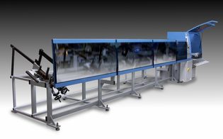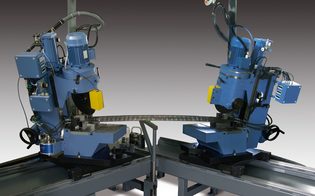 Als Doppelsäge mit Schifterschnitt und integrierter Bohrstation. Zur paarweisen Bearbeitung von bereits gebogenen Profilen.