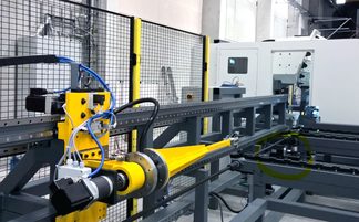 Für Rundrohr an einer Bohr-Sägeanlage mit kompletter Steuerungseinbindung. Angelieferte Rohrbunde werden automatisch vereinzelt, zugeführt und bearbeitet.