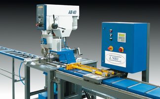 mit Vorschubachse (X) und Drehachse (A) und pneumatischem Spannstock. Bohrungsabstände und Drehwinkel sind program-mierbar.