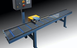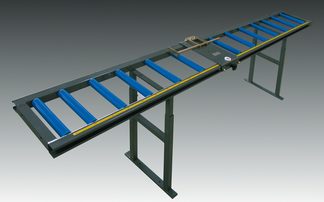 Auf Basis unserer Rollenbahn-systeme mit Anschlagstange, Stahl-Maßband und Lupe. Die Maßverstellung erfolgt manuell.