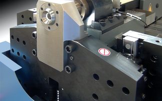 Mit zweiteiligem Maschinenbett und zusätzlicher Dreh- und Neigungsverstellung ermöglicht beidseitige Schifterschnitte an bereits gebogenen Bauteilen.