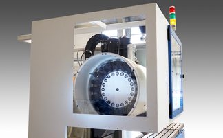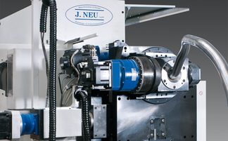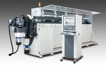 Umformmaschine zur Rohr-Endenbearbeitung mit großem Spannbereich und langem Umformweg. Werkzeugwechsler mit 2, 3 oder 4 Stationen.